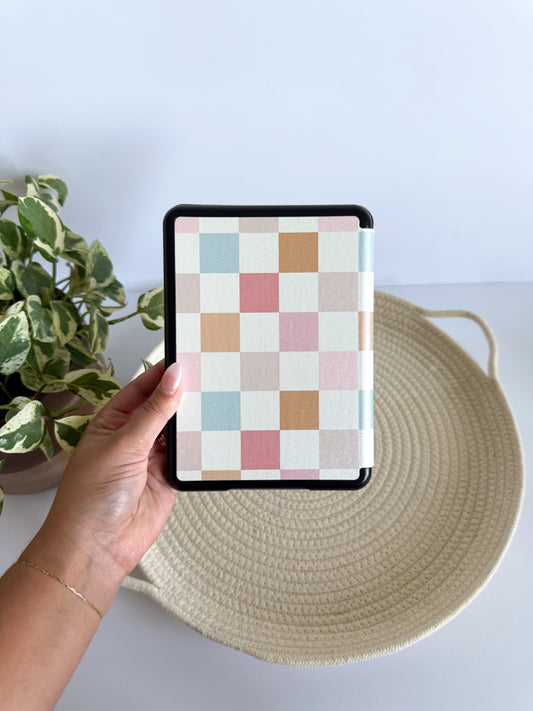 Pastel Checkered Kindle Paperwhite Case – Cute Bookish Cover for Readers & Book Lovers