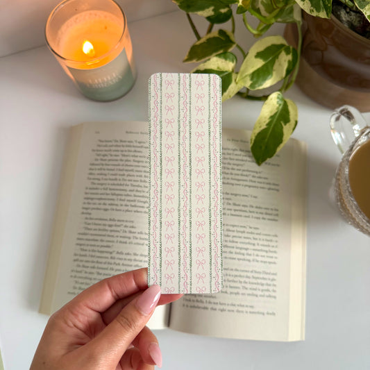 Pink Bows and Greenery Striped Double-Sided Bookmark