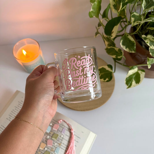 Read Past my Bedtime Bookish Glass Mug – Aesthetic Clear Mug for Coffee & Book Lovers