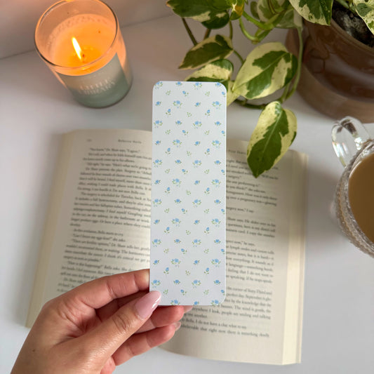 Dainty Blue Floral Double-Sided Bookmark