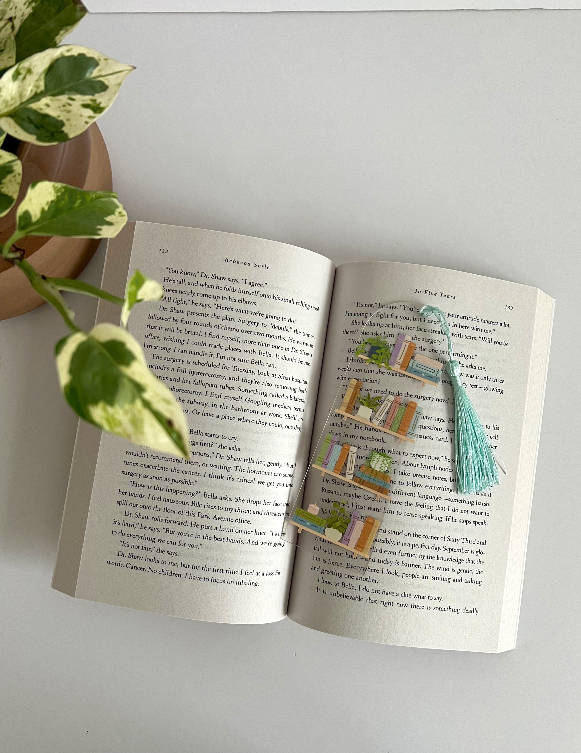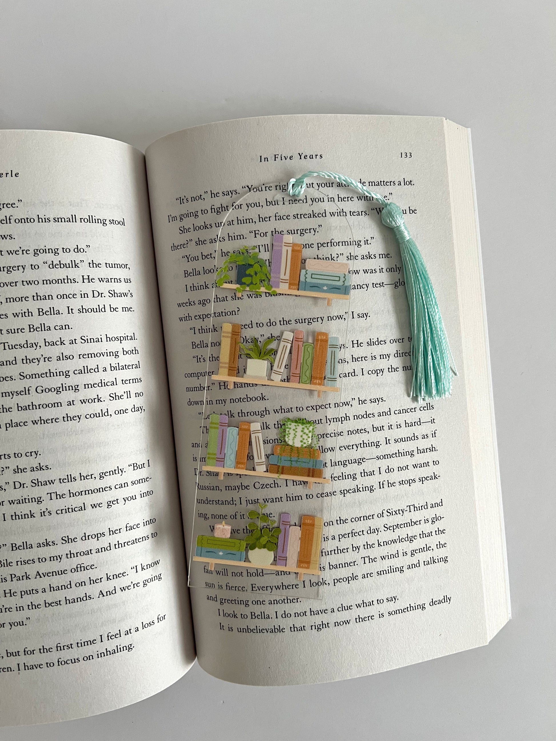 This bookshelf bookmark is a must-have for any book lover! Made from durable acrylic material, it features a tassel for easy page marking. Elevate your reading experience with this unique and eye-catching bookmark.