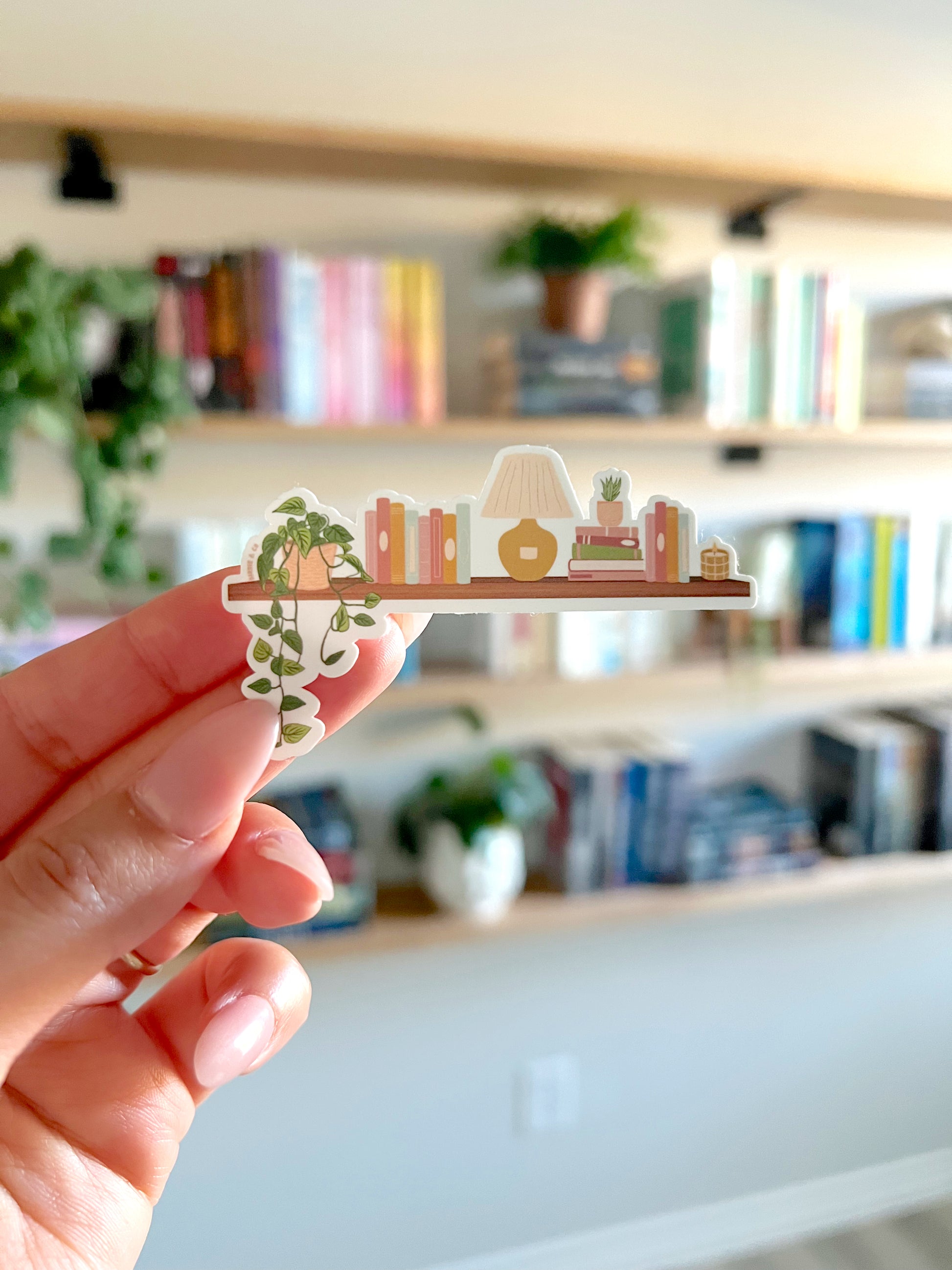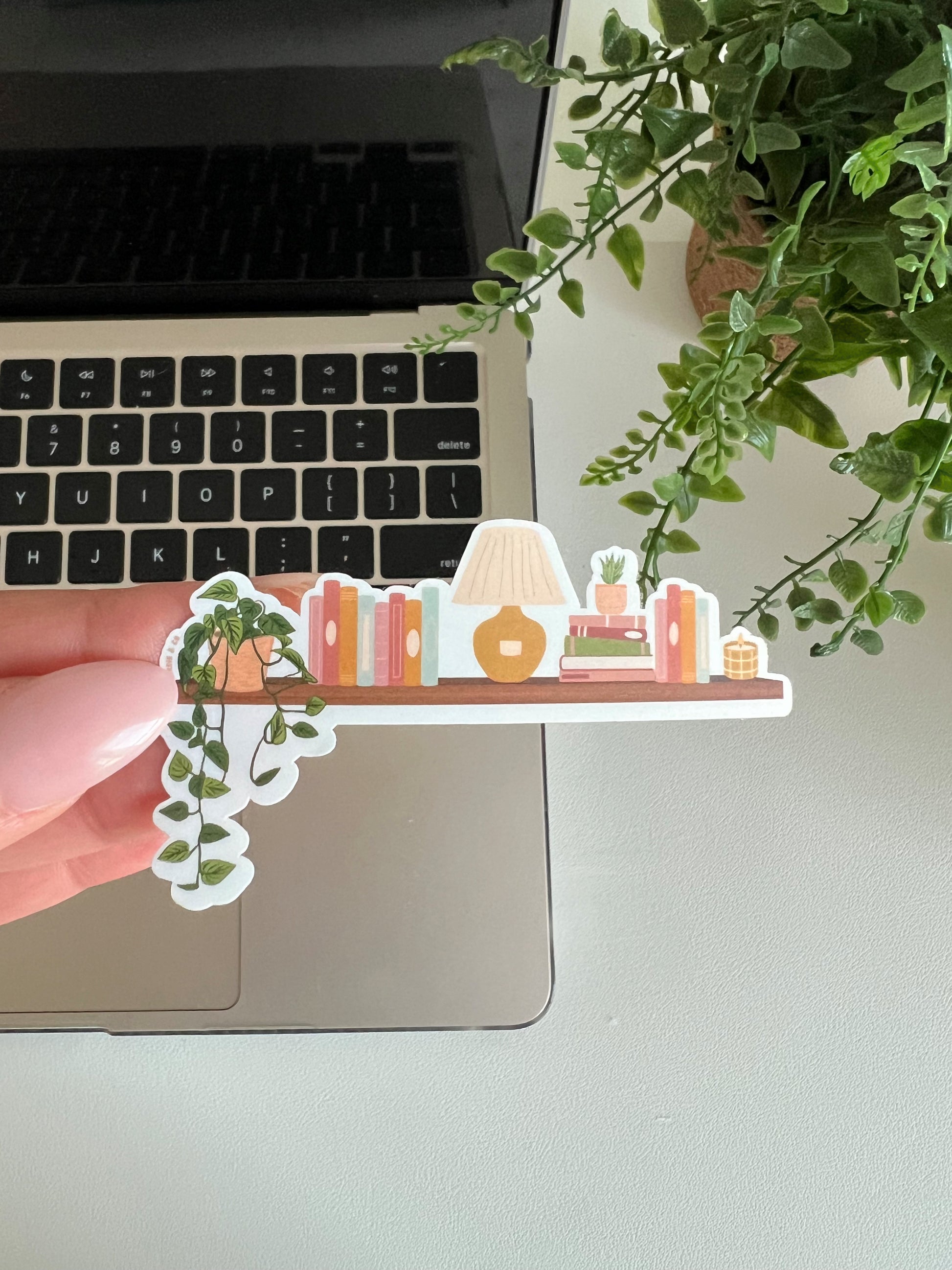 Add personality and character to your water bottle, laptop, kindle etc. with our waterproof Bookshelf Sticker. Featuring a beautifully illustrated bookshelf with books and plants, it's perfect sticker for any book lover!