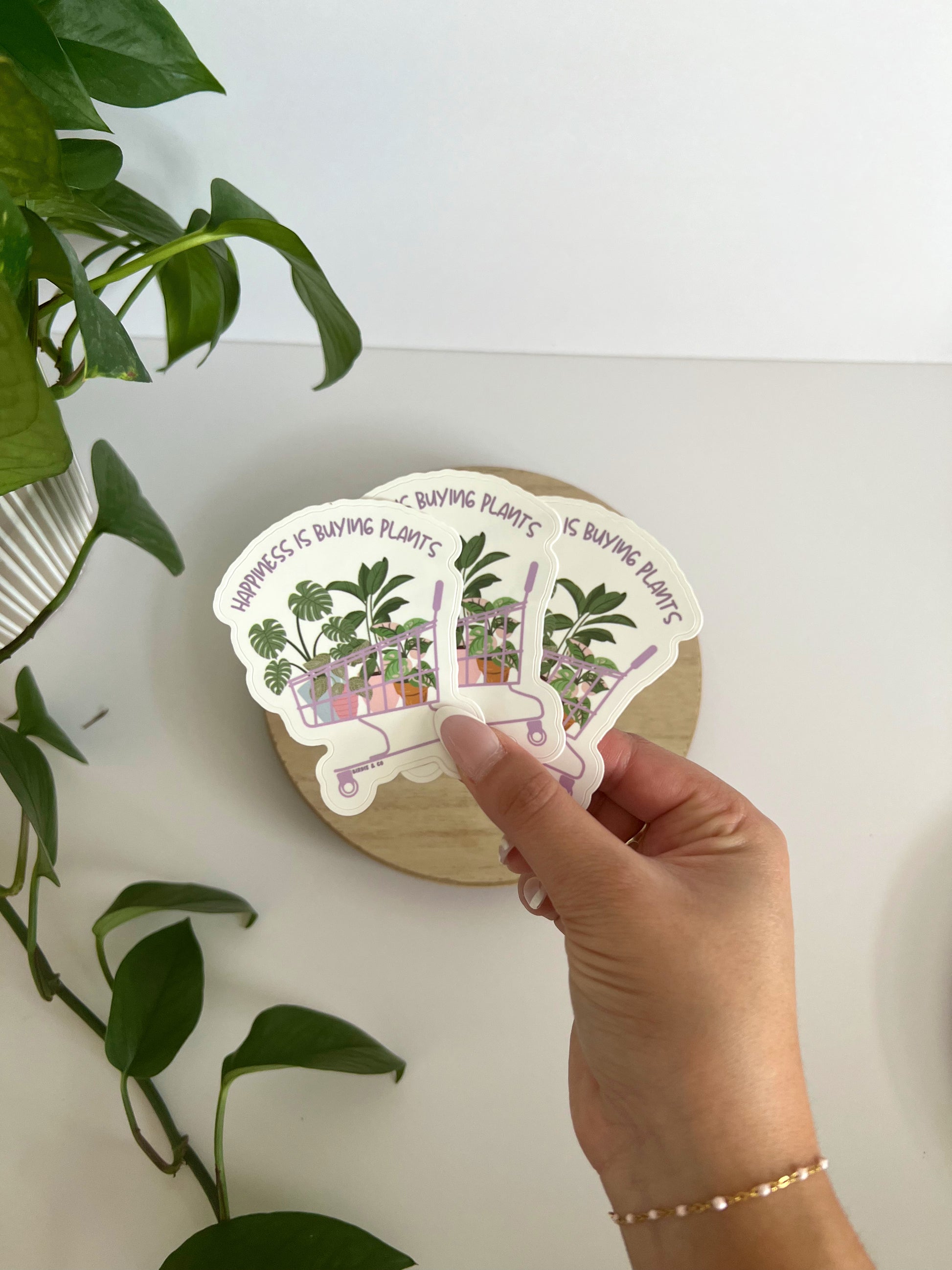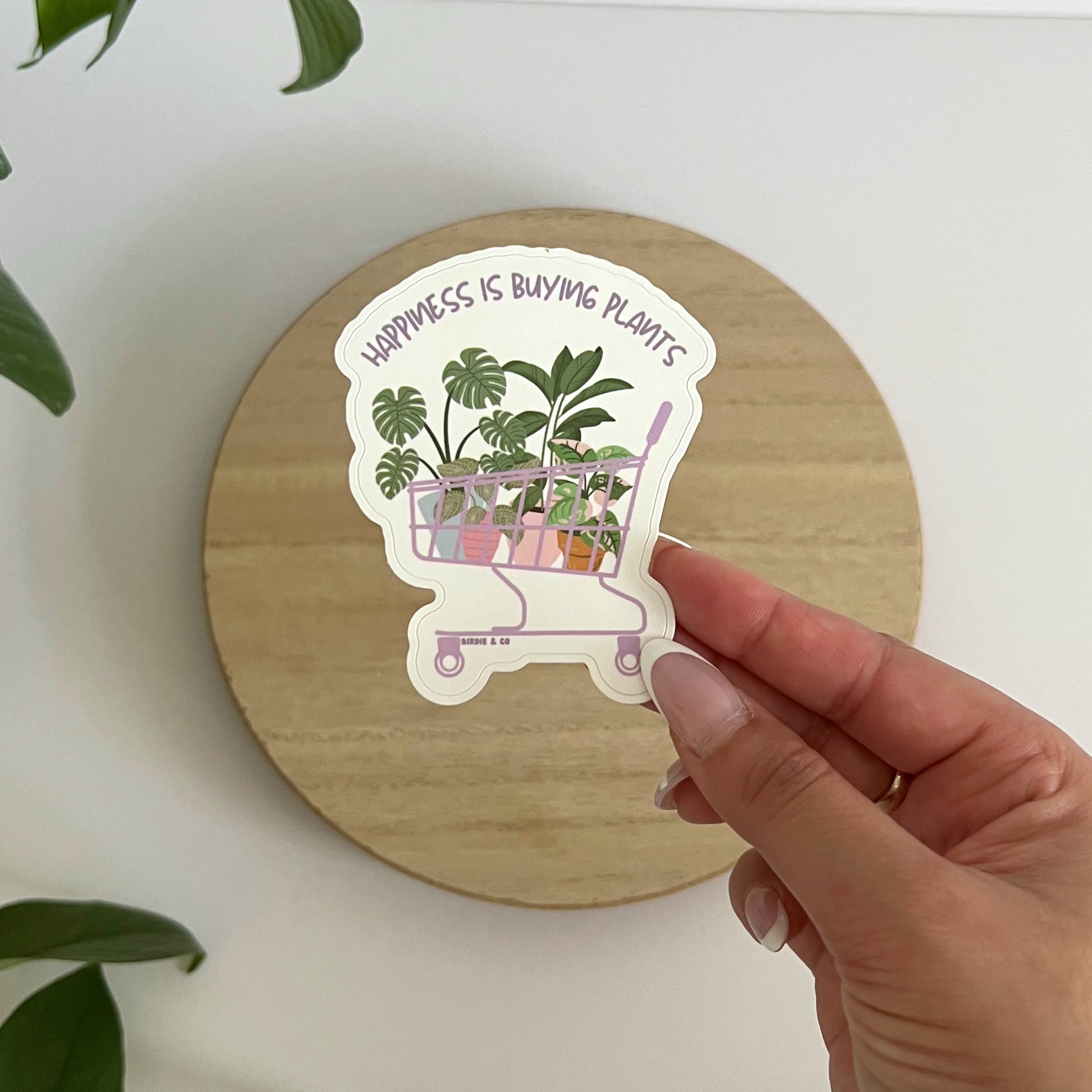 Add personality and character to your water bottle, laptop, kindle etc. with our waterproof Plant Sticker. Featuring a purple shopping cart illustration filled with plants, it's perfect sticker for any plant lover!