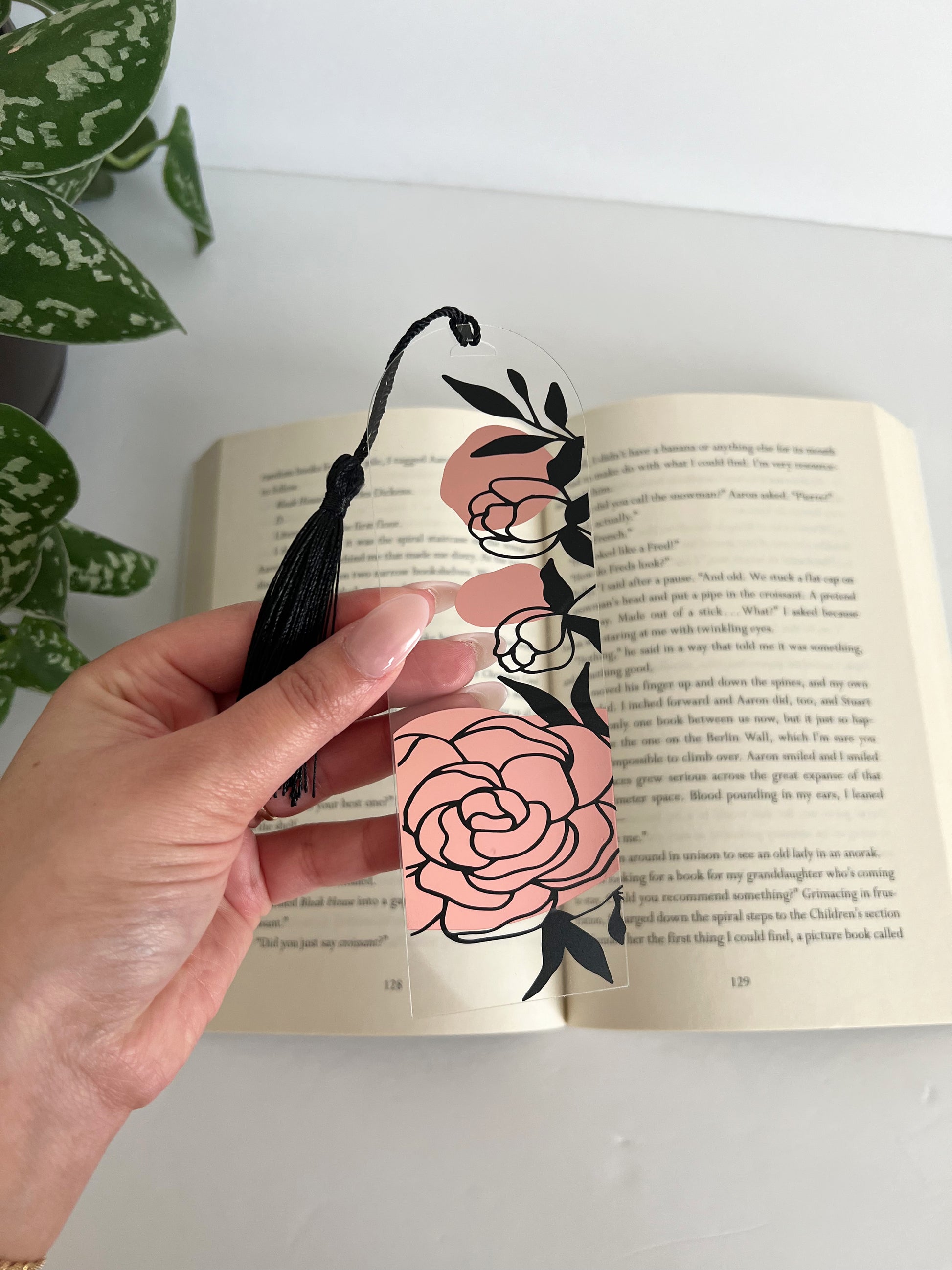 5.9'' x 1.97'' acrylic bookmark with vinyl decal + black tassel
