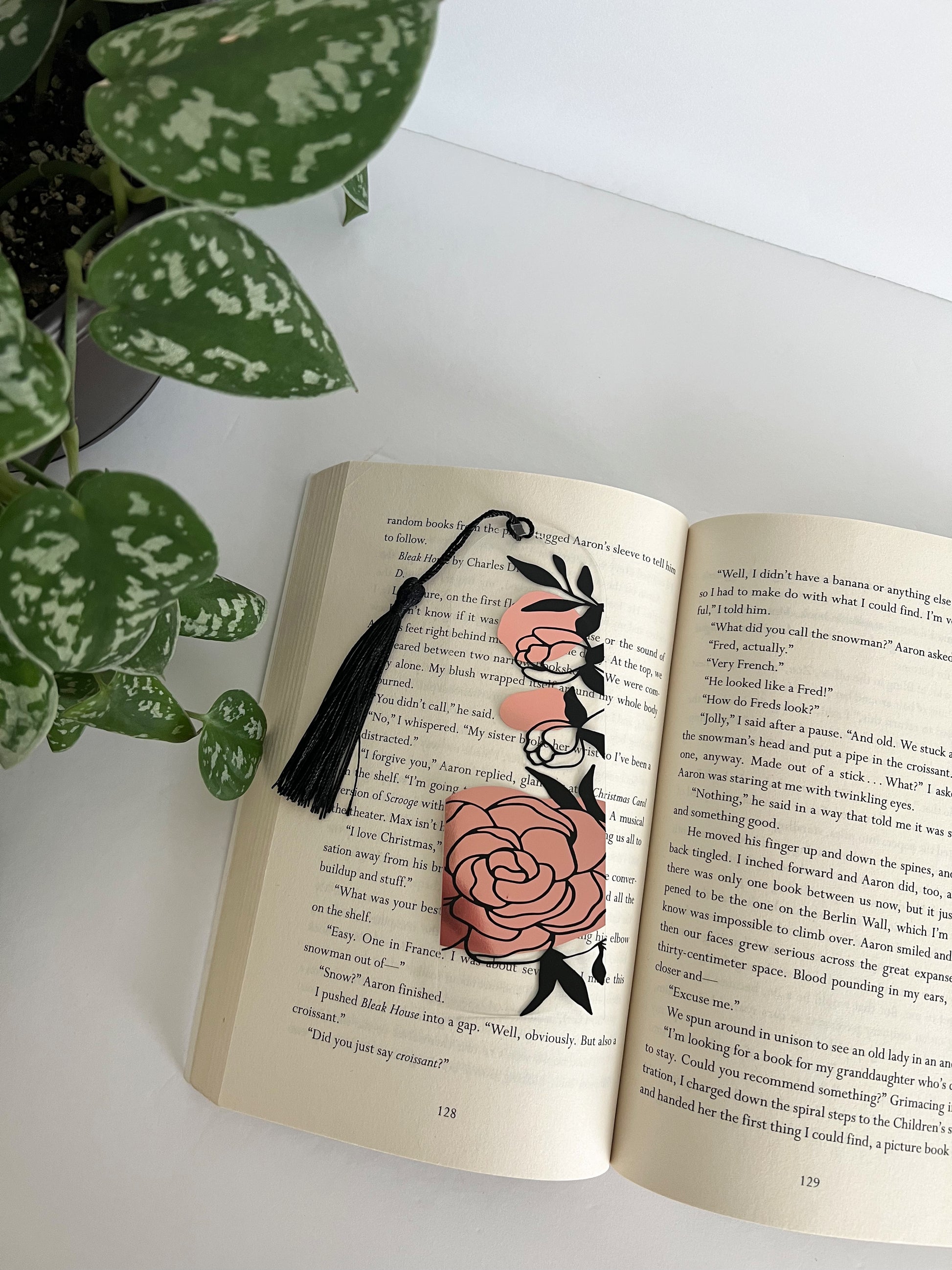 This rose bookmark is a must-have for any book lover! Made from durable acrylic material, it features a tassel for easy page marking. Elevate your reading experience with this unique and eye-catching holographic rose bookmark.