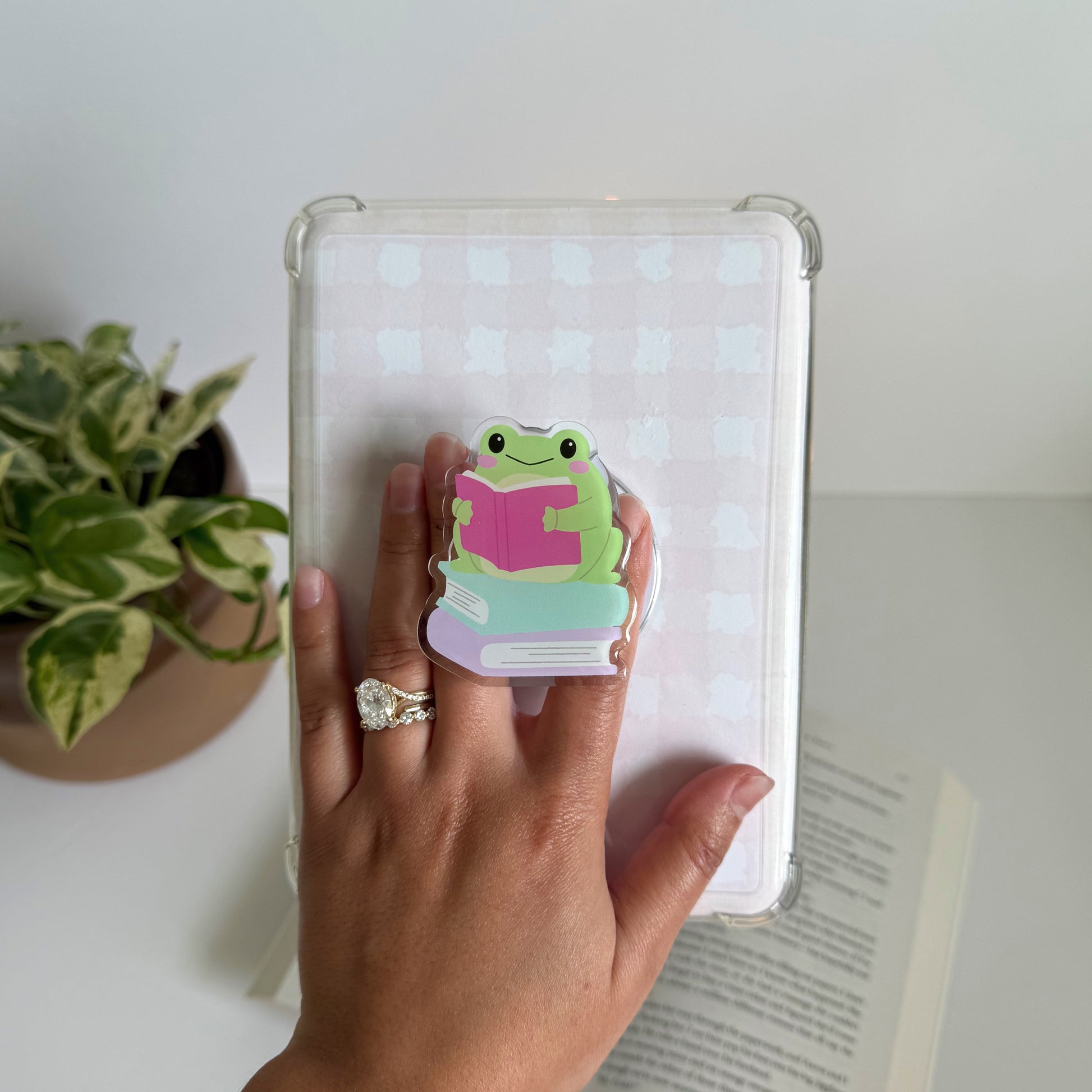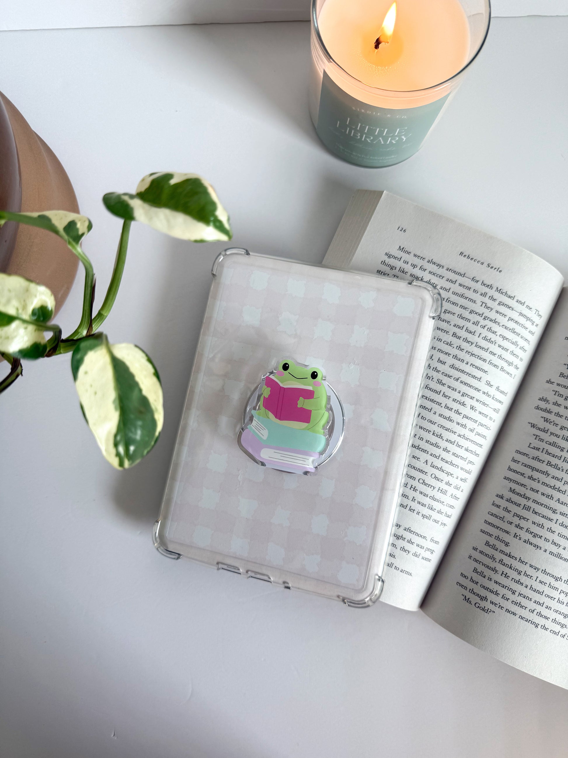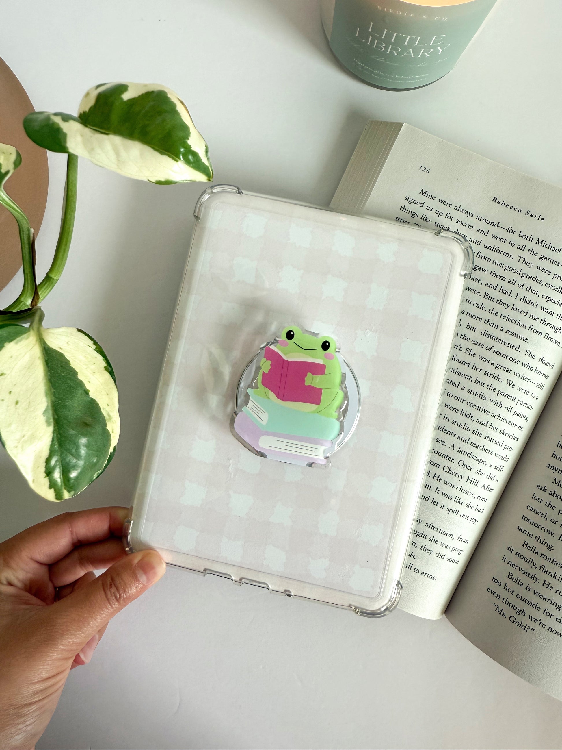 frog kindle grip, mag-safe kindle grip, reading accessories, cute book grip, book lover gift, e-reader grip, kawaii reading stand, frog book accessory, cozy reading essentials